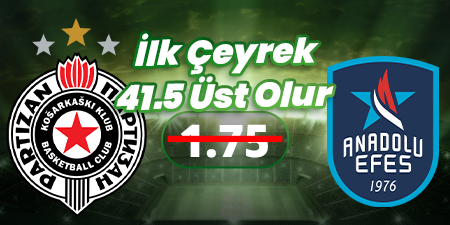 İlk Çeyrek 41.5 Üst Olur09 Ekim 21:30Partizan - Anadolu Efes